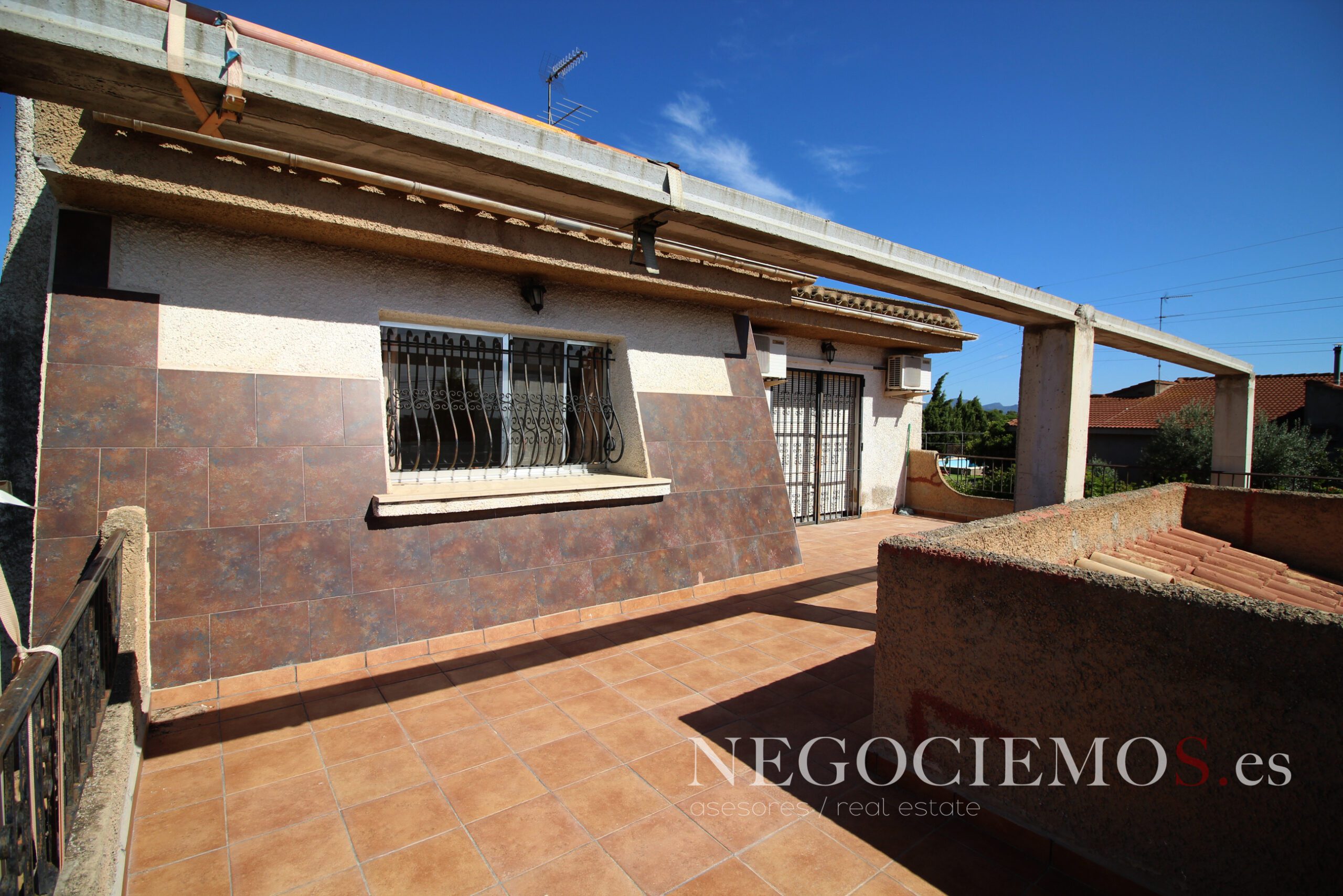 Vivienda de amplias y espaciosas dimensiones en todas sus superficies, tanto en la zona de entrada ( amplia zona de parking descubierto ), como la parte de jardín, zona de piscina, terraza, porche, huerto, y obviamente en la propia vivienda, también consta de un garaje para al menos 4 vehículos ( actualmente destinado a taller de bricolage )