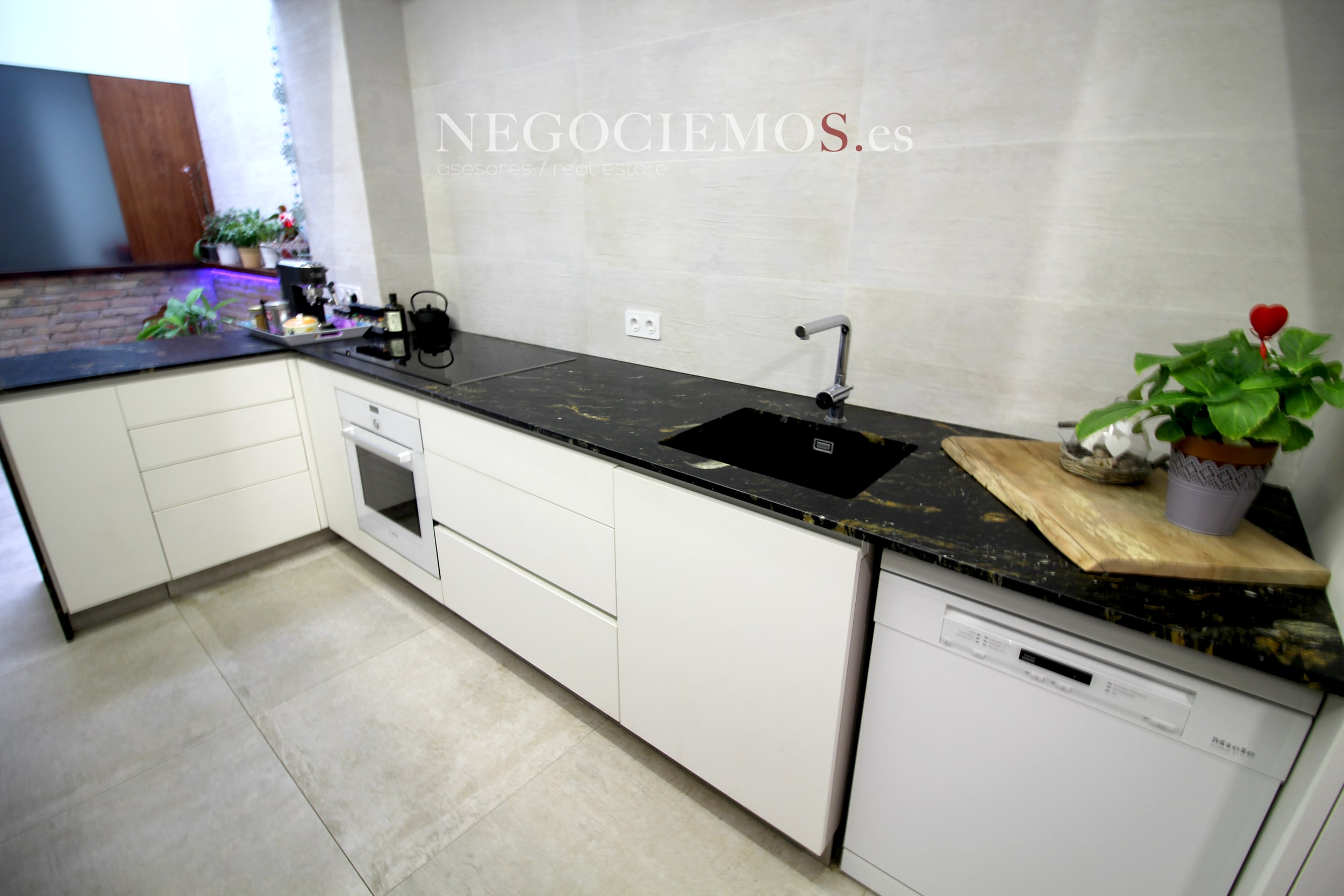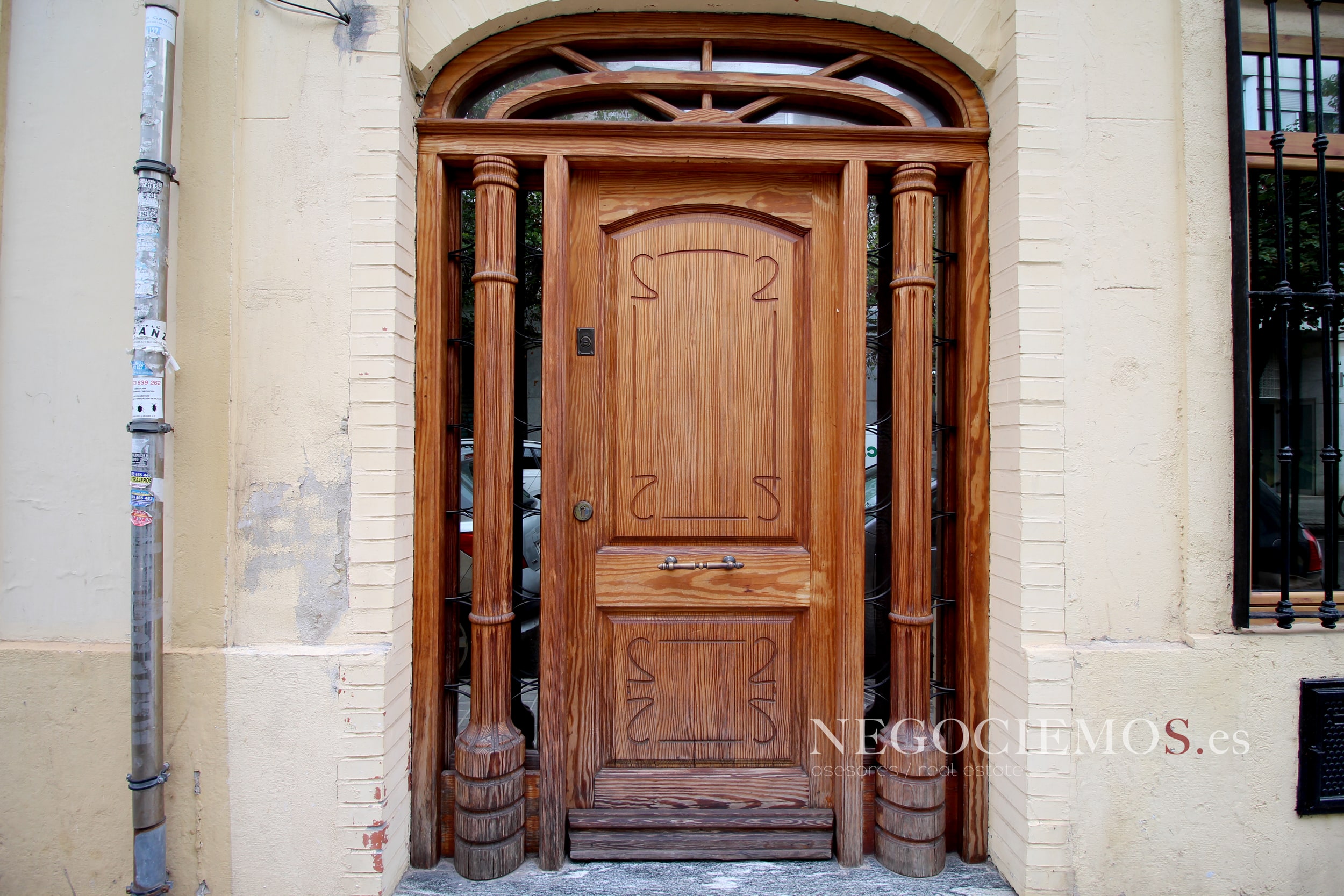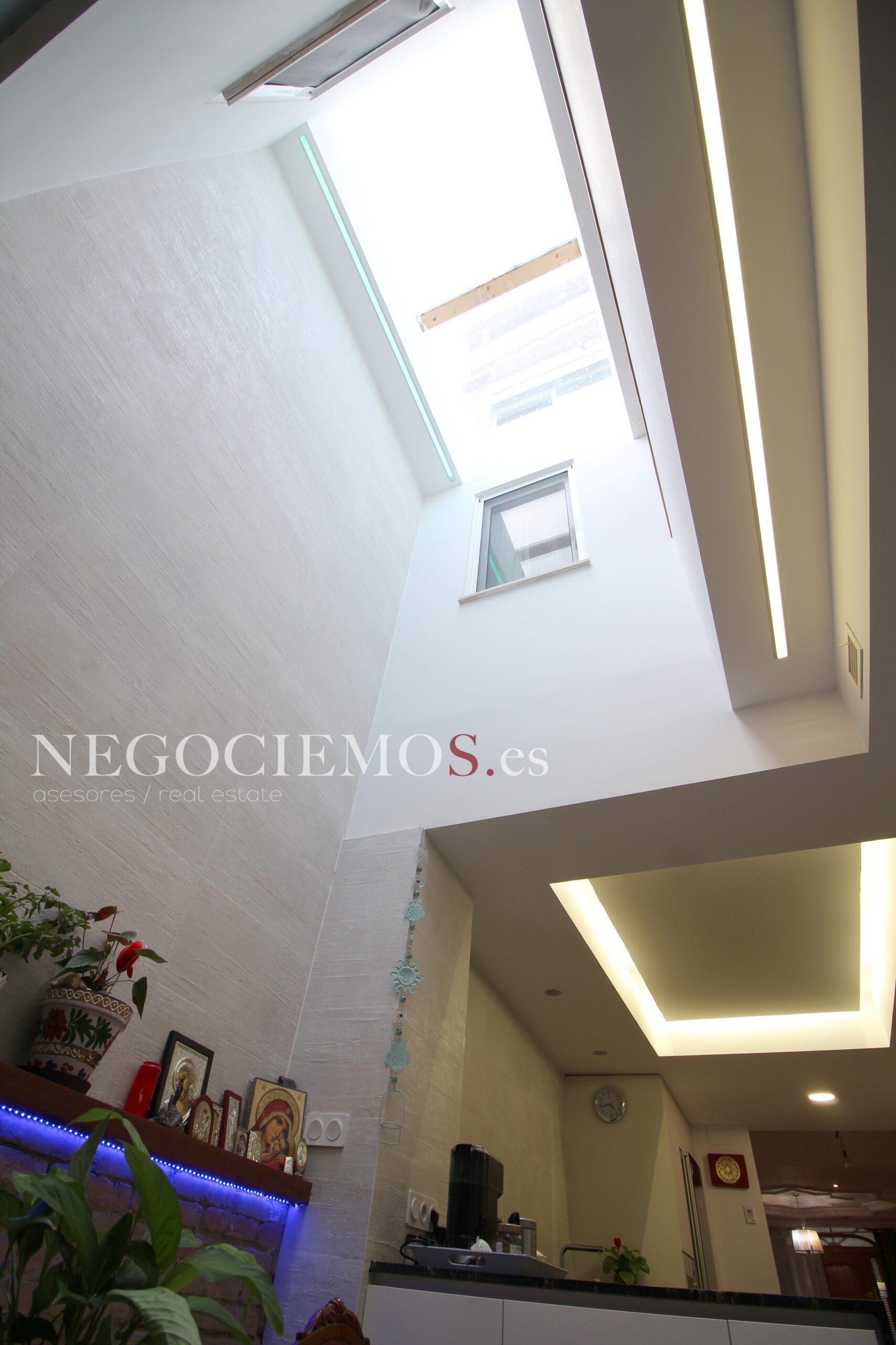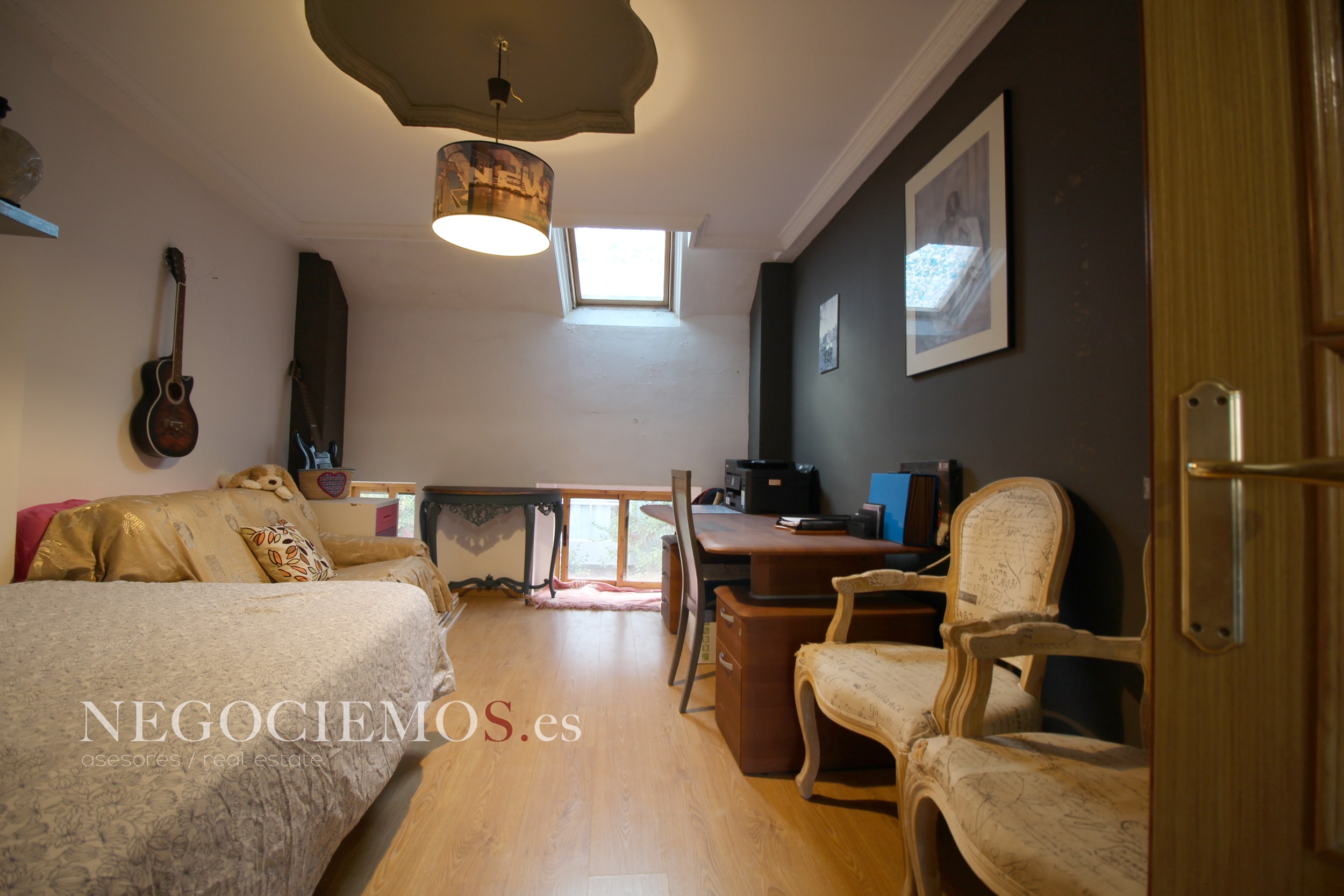 Remodelada en 2020 conserva sus materiales de origen como el ladrillo visto de barro en paredes junto a unos modernos y cuidados techos con relieves e iluminación led, así mismo los suelos de marmol travertino y parquet le confieren un contraste elegante, moderno y acogedor. Consta de un tragaluz en el patio inglés aportando un plus de luz y espacio en todas sus plantas.