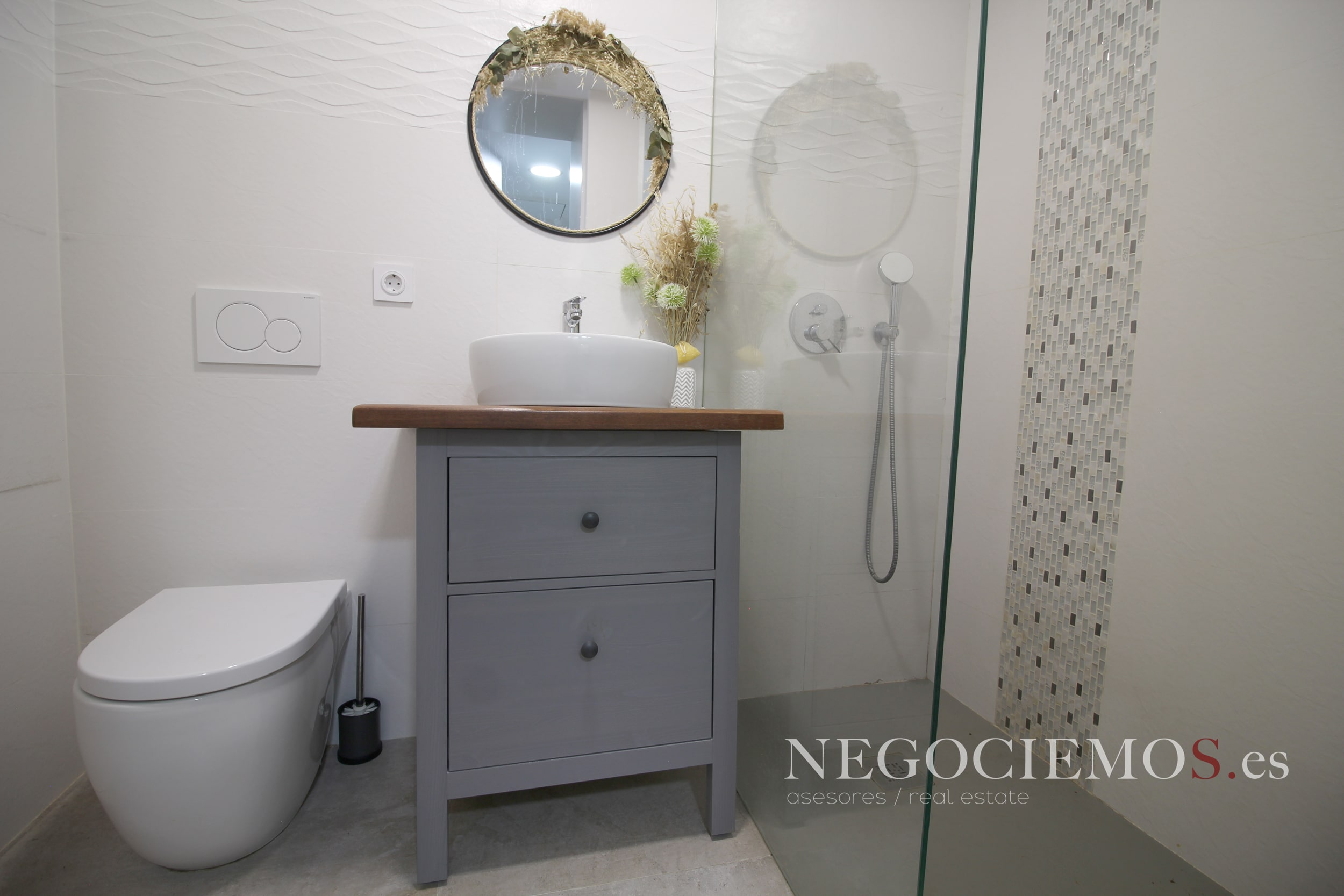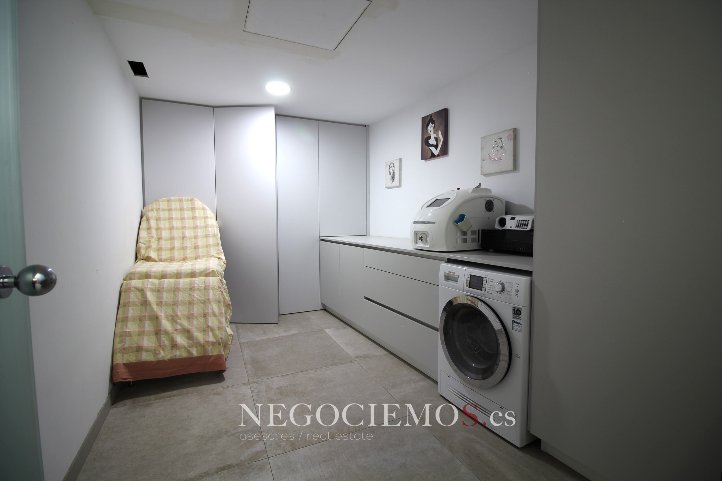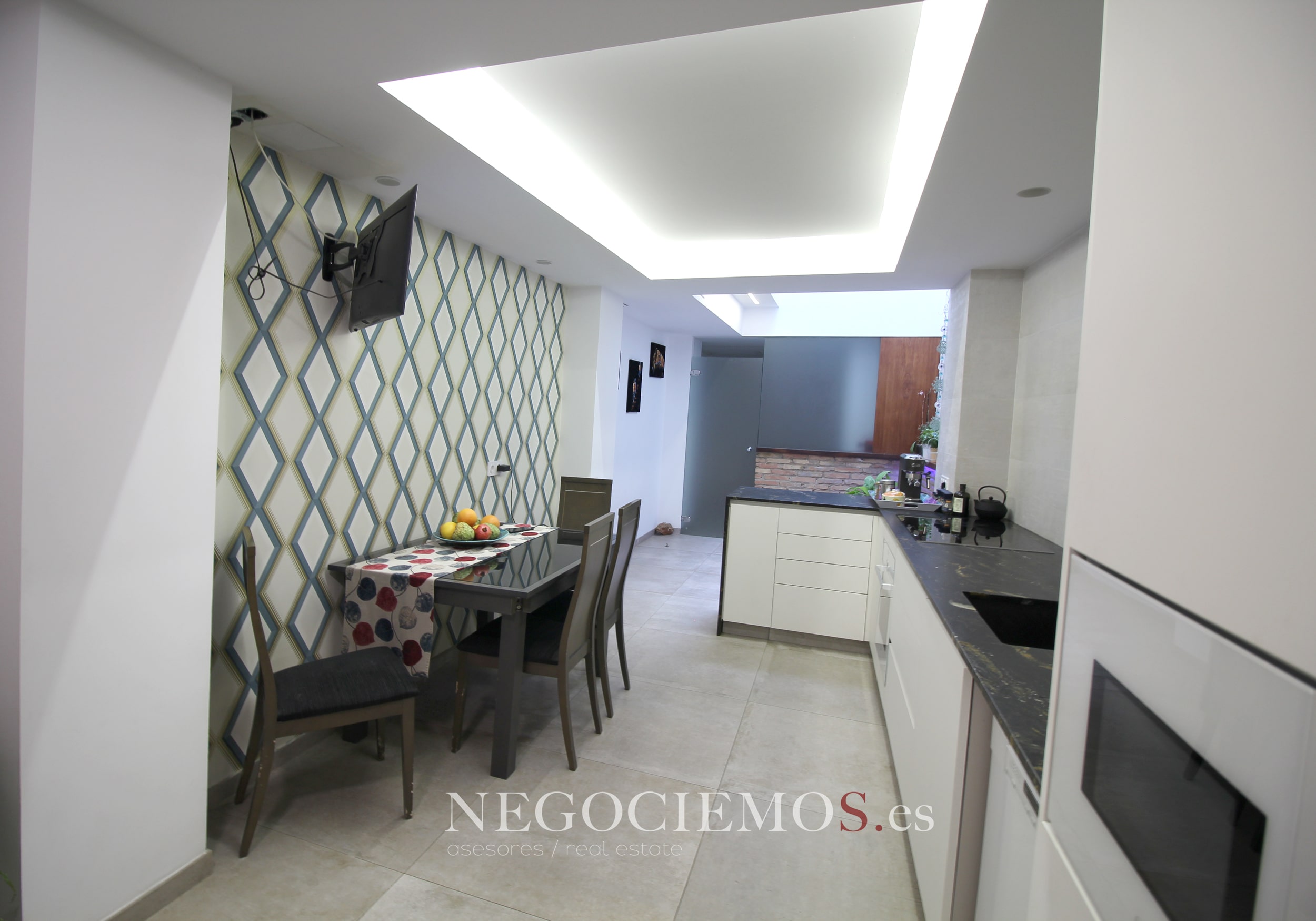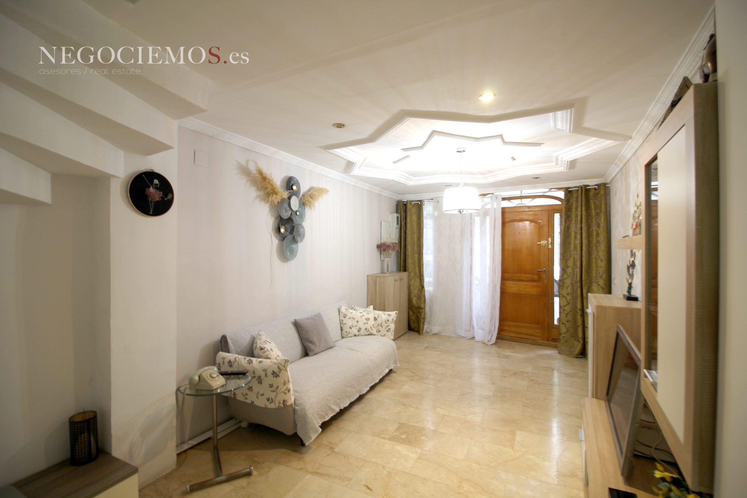Remodelada en 2020 conserva sus materiales de origen como el ladrillo visto de barro en paredes junto a unos modernos y cuidados techos con relieves e iluminación led, así mismo los suelos de marmol travertino y parquet le confieren un contraste elegante, moderno y acogedor. Consta de un tragaluz en el patio inglés aportando un plus de luz y espacio en todas sus plantas.