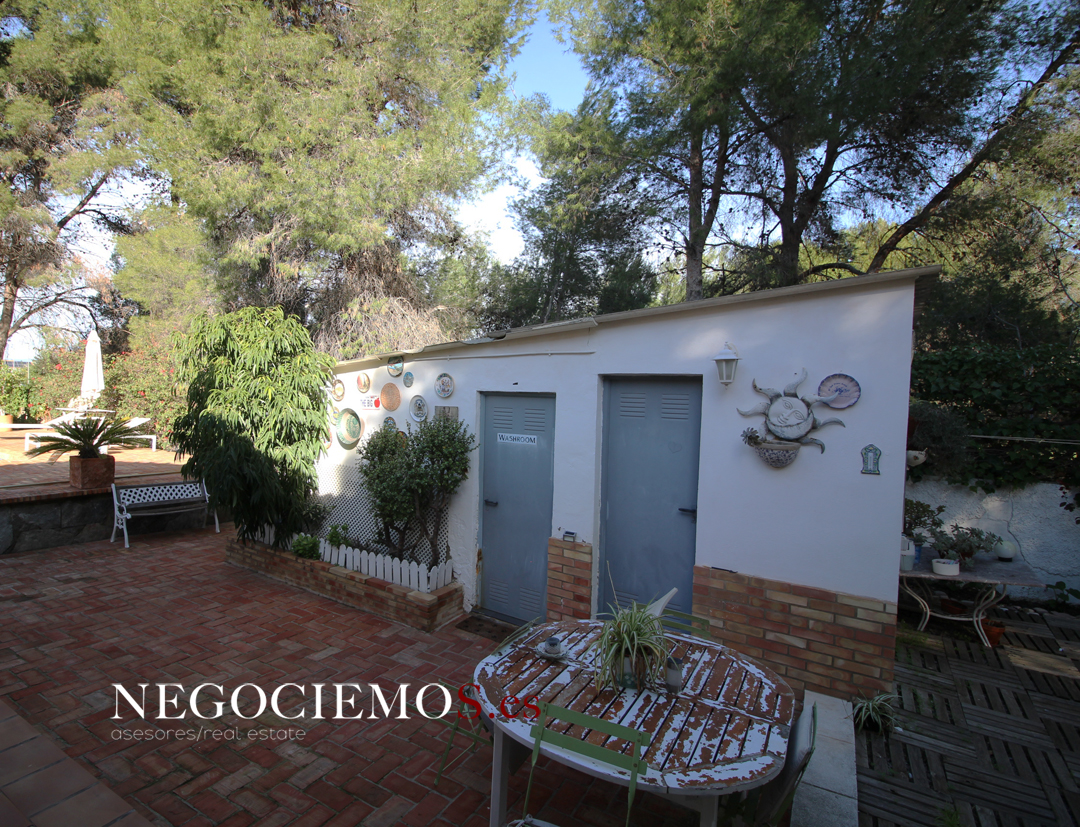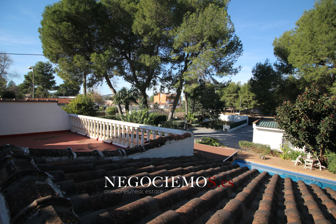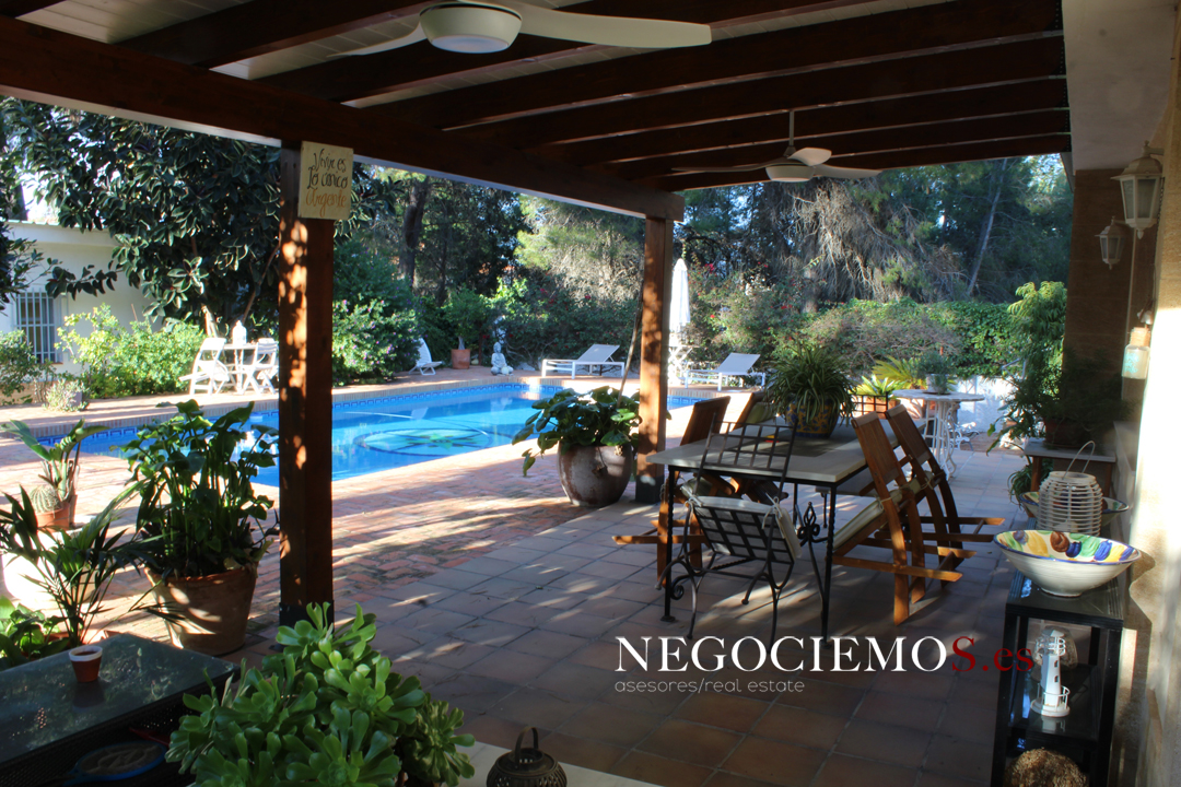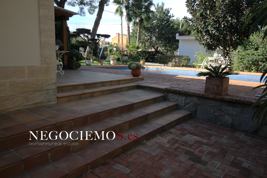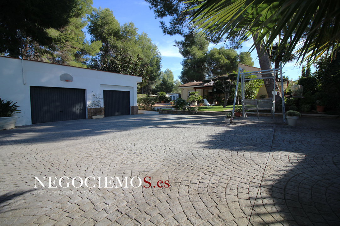 Fantástico chalet individual con imponente jardín; 1862 mtrs2, ( conserva incluso las antiguas cuadras para caballos y su pista de trote que disponía su inicial propietario ) y amplia piscina ( 10 x 5 mtrs ) colindante a 3 calles en la parte alta de Montealegre.