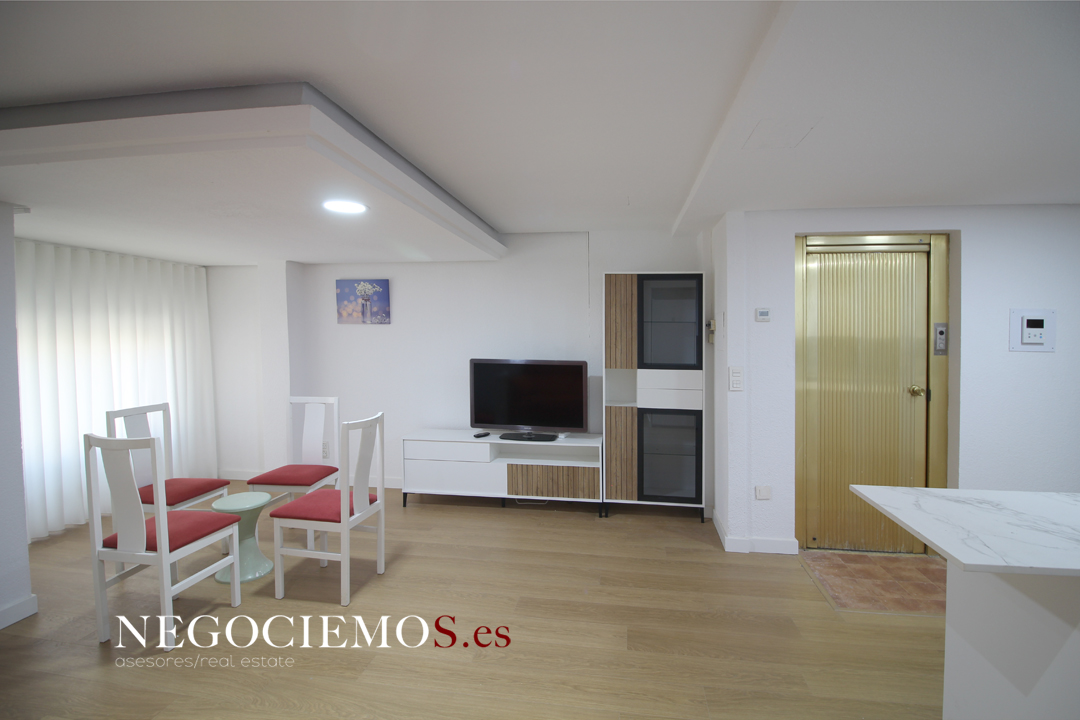 • 1 habitación + gran salón + 1 aseo ( sin baño ni ducha ) / aire acondicionado / Terraza 2 x 2 m2 aprox / Exterior Ambas viviendas cuentan con ascensor a planta de uso privado ( acceso por código privado ).                                                                                                                                                                            Huelga decir que nos encontramos en uno de los puntos más idóneamente ubicados, a espaldas de la nueva estación del AVE ( estación Joaquín Sorolla ), al costado de la dinámica, bulliciosa y cosmopolita barrio de ‘Ruzafa’ con su excelsa oferta gastronómica, y a escasos minutos de la confluencia de calle Colón, Ruzafa y plz del ayuntamiento: el más vital centro de la ciudad ! Todos tus posibles necesidades y caprichos atendidas en un radio de mil metros a la redonda. Zona excelentemente comunicada y dotada de cualquier infraestructura así como de todo tipo de servicios y comercios.
